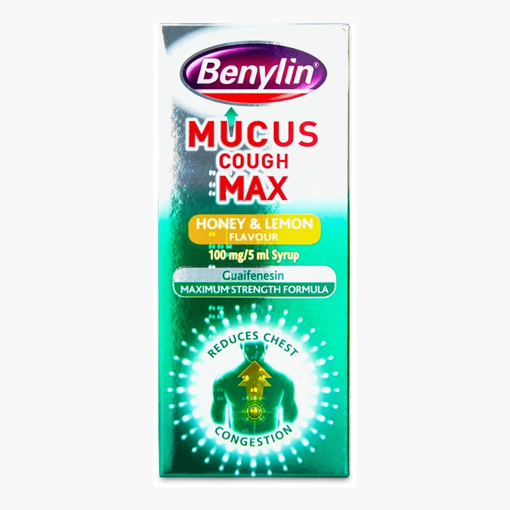 Benylin Mucus Cough Max Honey & Lemon 150ml relieves chesty coughsContains guaifenesin to loosen phlegm and mucusAllow you to naturally cough up the congestion and breathe easierMax strength formula for fast reliefMade with an invigorating honey, lemon and menthol tasteSuitable for adults and adolescents aged 12 years and over