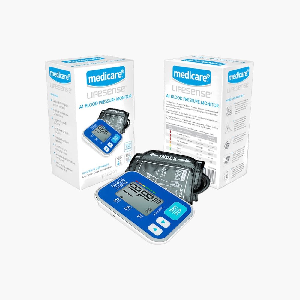 Pack Contains: One Medicare Lifesense A1 Blood Pressure Monitor, blood pressure cuff, and 4 x AAA batteries (required for operation).