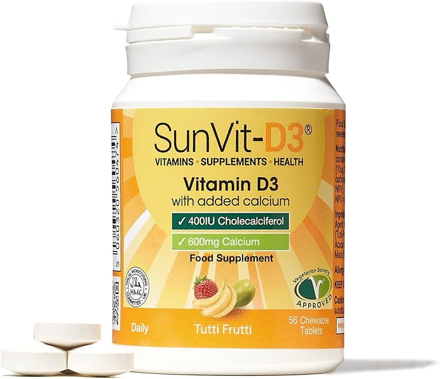 Introducing SunVit D3 400IU with Calcium 600mg – Tutti Fruiti Flavour: A Delicious Boost for Your Bone Health!