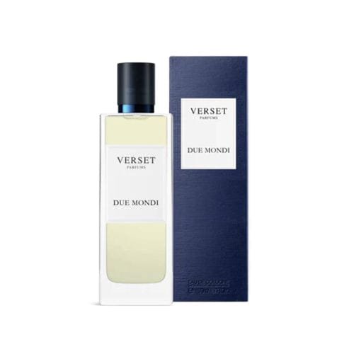 Verset Due Mondi Eau De Parfum Pour Homme 50ml A bright, clean and lively aromatic fragrance, luminous with a herbaceous sweet aroma of sage, complimented with daffodil combined with complex peppery floral rosewood, rounded with powdery courmarin and earthed with oakmoss musk.
